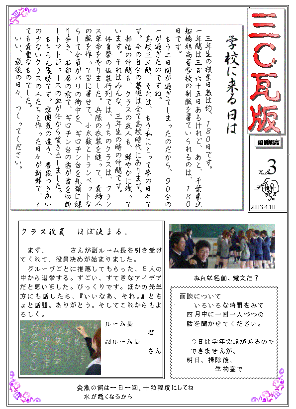 3年C組瓦版 第一号