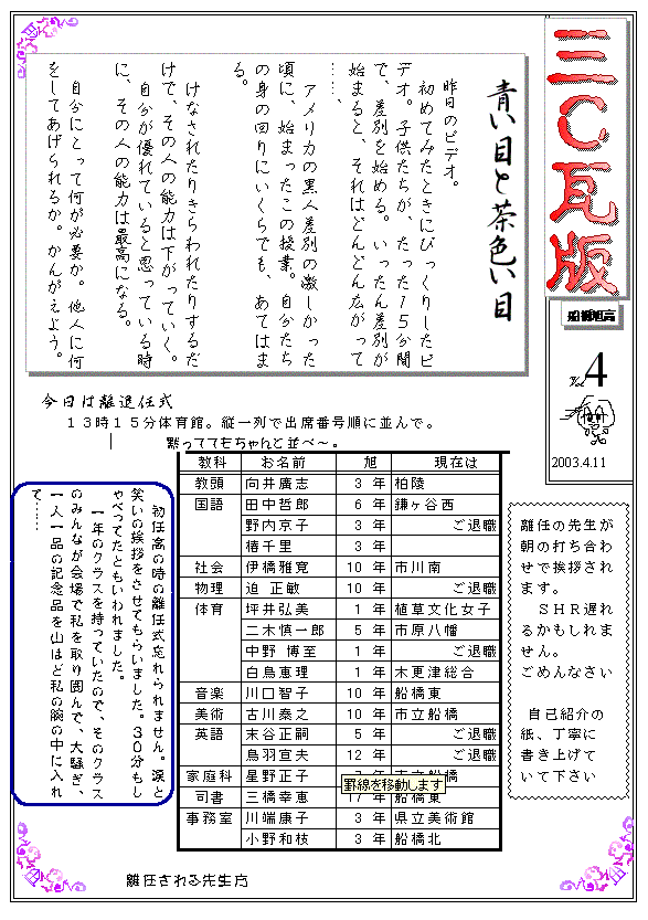 3年C組瓦版 第四号