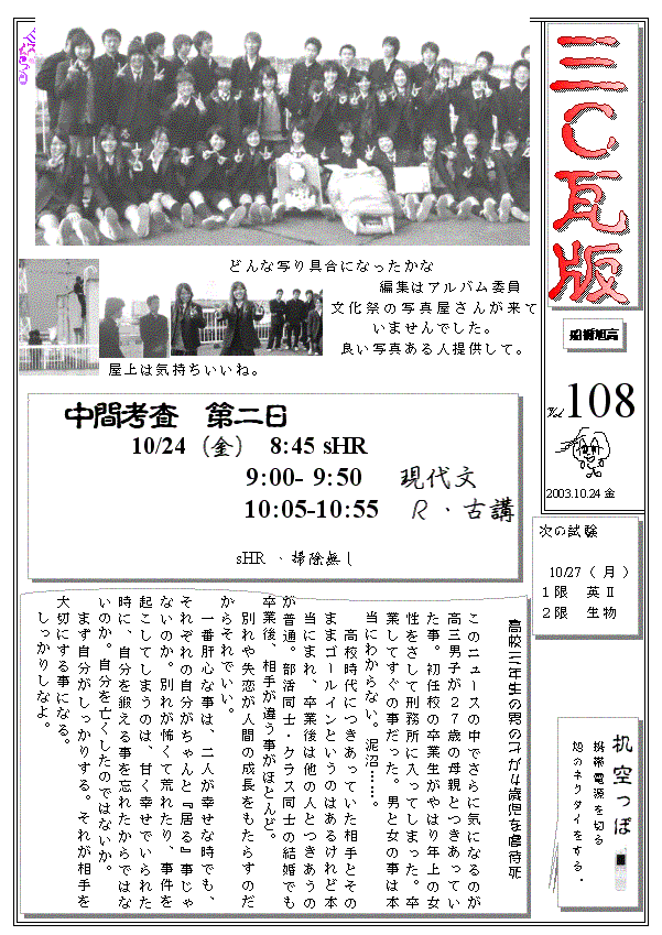 3CŠ¢”Å@‘D‹´ˆ®‚26Šú¶‚R”N‚b‘g‚Ì“úЧV•· @