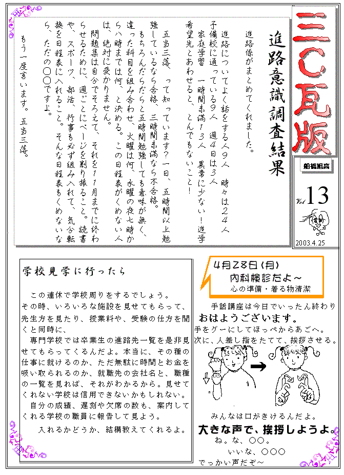 3年C組瓦版 第13号