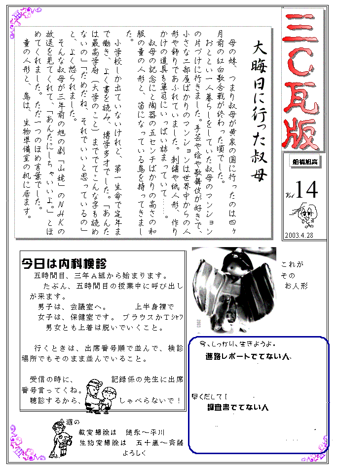 3年C組瓦版 第14号