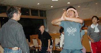 夜はロビーで稽古しました