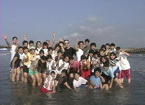 宿泊所から往復3キロの海岸まで毎朝6時半に走りました。8月10日には記念撮影までしたりして。